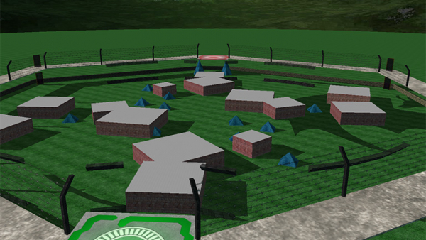 A classic favorite, this map features corner bases with a long ramp between them offering a path off the ground for flag running. The center platform contains a teleporter with one side leading to each corner, and the corner teleporters link to each other.
